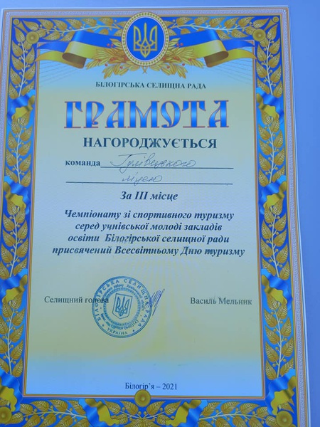 Вітаємо команду Гулівецького ліцею з загальнокомандним третім місцем зі змагань з спортивного туризму серед команд Білогірської селищної ради.
