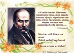 Тарас Григорович Шевченко — наш геніальний національний поет, художник, великий син великого народу. І чим далі у часі віддаляється він від нас, тим стає нам ріднішим, ближчим, необхіднішим. Бо допоки є у нас мова, Україна та її духовний батько Тарас Шевченко — будемо й ми, ніким непереможені і не поставлені на коліна!